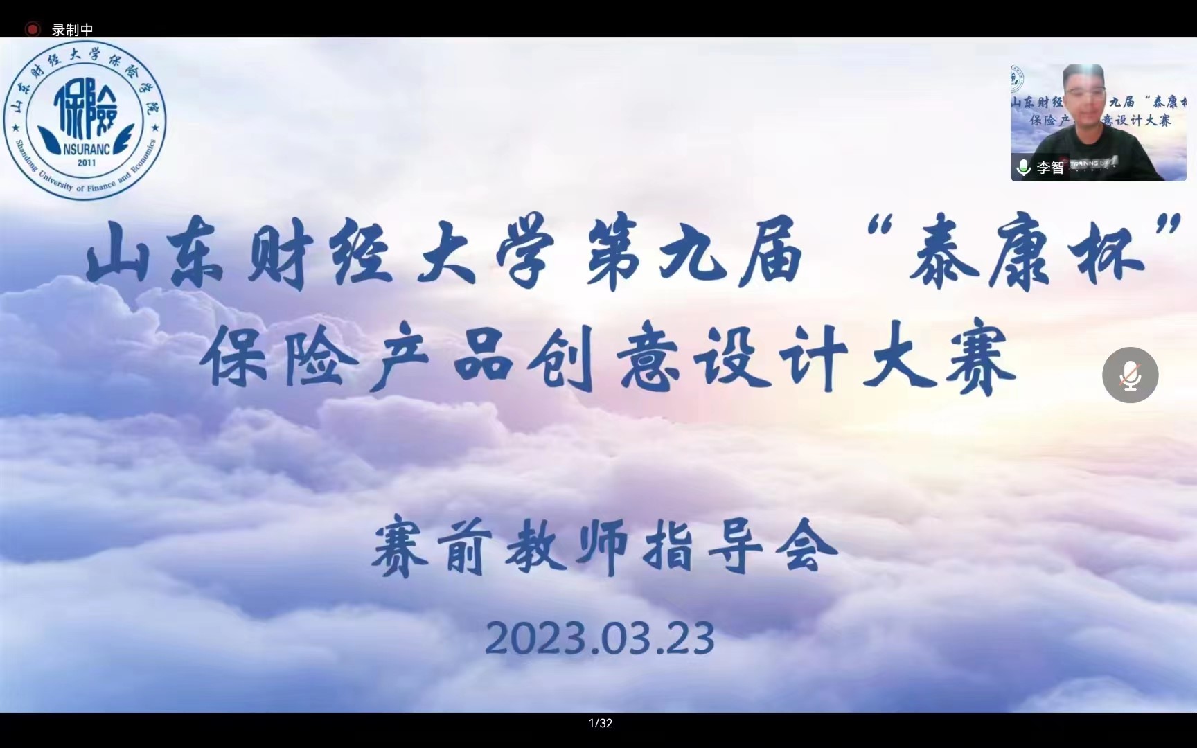 赛前指导会以线上会议的形式分两场举行,3月16日大赛第一场分享指导会邀请往届获保险产品创意设计大赛获奖团队代表做经验分享;3月23日大赛第二场分享指导会邀雷速体育 副院长于新亮、副教授王霞老师、马玉秀老师进行线上指导,雷速体育 团委书记李智主持会议,2022级辅导员张腾做大赛动员,分享指导会吸引了全校学生的广泛关注和参与。