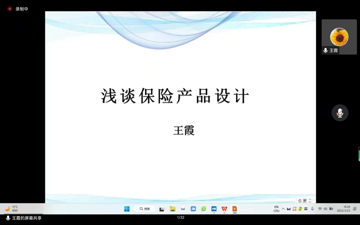 于诗寒从比赛的总体流程、前期准备、比赛过程赛后总结四个阶段分享了她关于保险产品创意设计大赛的实践经验与感悟,建议同学们要选择热点选题、专业的指导老师以及合拍的队友三个方面来提升作品,并养成随时补添、多次修改、的习惯;李鑫从自己对保险产品的设计理念、保险责任、保险费用角度分享自己的经验与感悟,以作品展示的方式更加直观清晰地指导同学们如何合理陈述保险产品的保险责任,也讲述了在费率厘定的重要性以及使用精算模型需注意的事项。