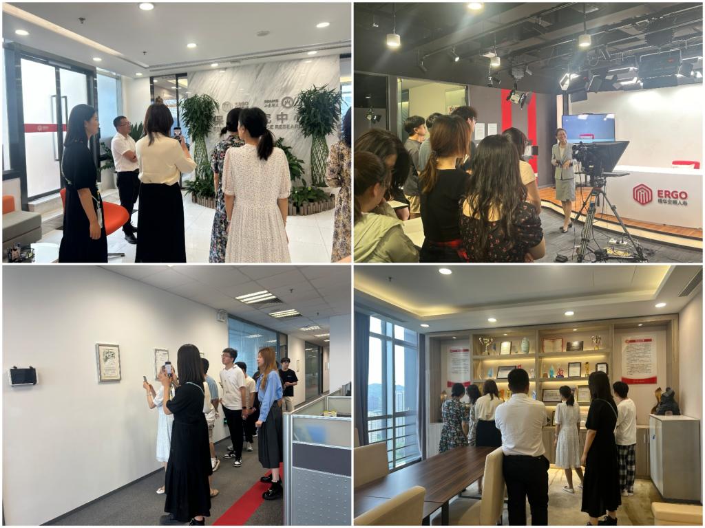 随后,汤圆和郑开武带领学院师生参观公司,同学们近距离了解各部门职能,沉浸式感受雷速体育,为未来职业发展奠定了认知基础。此外,师生一行还参观了山东财大-德华安顾人寿保险研究中心,了解校企联合开展课题研究、人才培养的创新成果;在德华安顾人寿中央演播室,工作人员展示了现代保险企业在品牌塑造与数字化传播领域的创新实践。