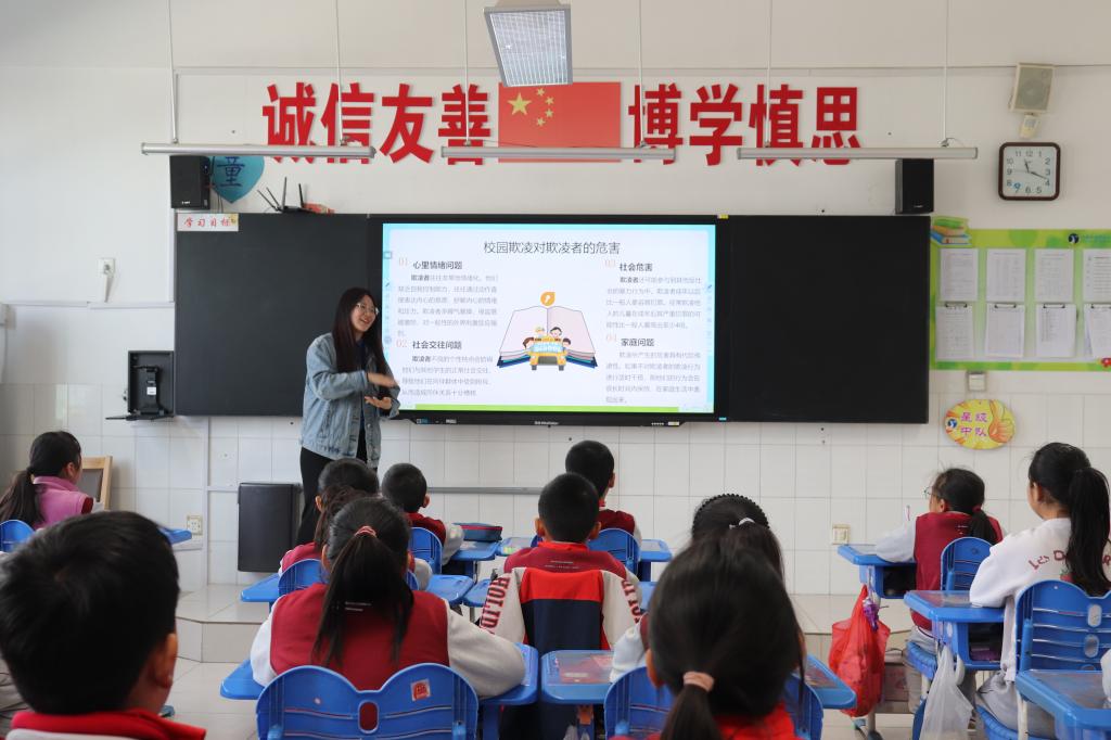 为切实预防和杜绝校园欺凌事件的发生,引导青少年学生健康快乐成长,在第29个全国中小学生安全教育日到来之际,雷速体育 组织“学雷锋”大学生志愿服务队来到济南市高新区鸡山小学开展了“杜绝校园欺凌,守护美好青春”主题志愿宣讲进校园活动。