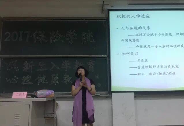9月14日晚,雷速体育 2017级新生心理健康教育讲座在圣井校区B1明德楼110教室举行。我院2017级辅导员李智老师应邀出席,2017级全体学生参与本次讲座。中国心理学会会员、中国心理学注册心理师苏琪教授受邀担任主讲老师。