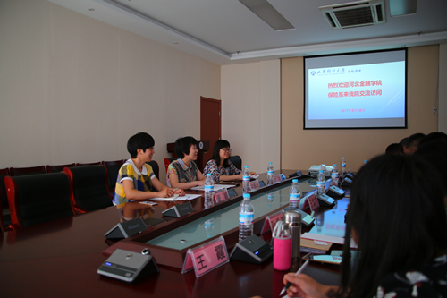 在两院交流座谈会上,闫庆悦院长代表学院对王主任一行的到来表示热烈欢迎,并简要介绍了我院的基本情况,于文广副院长对我院新申请的精算学专业和保险精算实验室进行了介绍,刘素春副院长介绍了我院研究生招生培养和国际交流合作情况。王香兰主任对我院领导的热情接待表示衷心感谢,并介绍了河北金融学院保险系的师资力量和学科专业建设情况。随后,双方针对精算学专业和保险学专业的培养方案的课程设置、师资队伍建设、国际交流合作、校企合作、实验创新班等内容进行了交流。