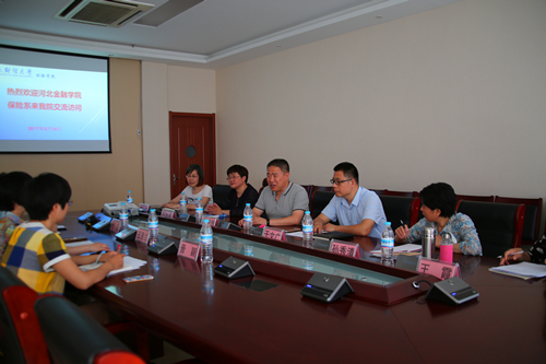 5月16日上午,河北金融学院保险系主任王香兰教授一行三人到访我院考察并进行交流座谈,我院闫庆悦院长、刘素春副院长、于文广副院长以及教研室主任等参加了座谈。