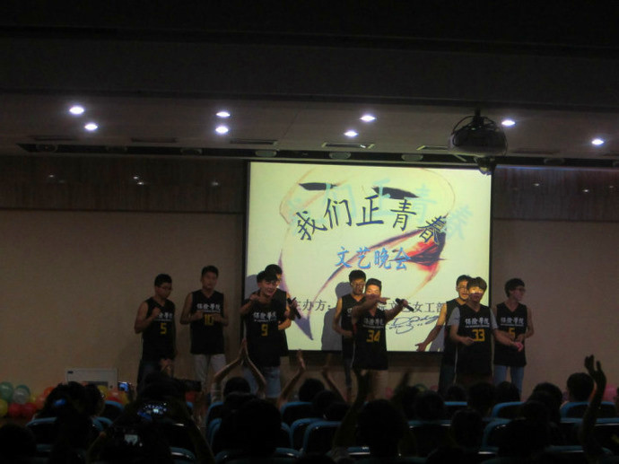 自成立以来学院师生共奋进的点点滴滴和光辉岁月。随后,青春动感的开场舞拉开了晚会的序幕,边际乐队的演唱使观众陶醉于美妙的旋律之中,篮球队员们的歌曲串烧也令在场观众热血沸腾;由大三年级杨晨表演的舞蹈《the boys》动感十足,将保险学子的青春活力表现得淋漓尽致,引起阵阵掌声,晚会掀起了一个小高潮。之后的节目也同样精彩纷呈,话剧《爱情公寓》、《神出没——圣井篇》妙趣横生,现场笑声不断;《新闻直播间》将幽默的主持方式与三段风格截然不同的舞蹈相结合,创意十足;康萌萌老师演唱的歌曲《望月》优美深情,成为本次晚会的一大亮点。最后,晚会在一曲旋律优美的合唱《青春,你好》中圆满落幕。