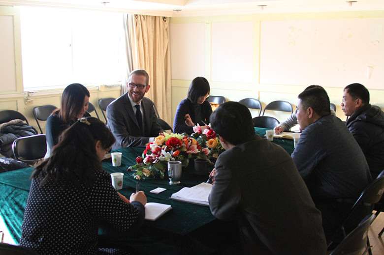 的师资队伍、在校学生、学科发展、科研、校企合作等方面的状况。托马斯先生介绍了德国安顾保险集团的概况及其此行的目的和期望。此行的目的在于加强与山东高校的合作,希望在学术研究、学术活动、学生资助等方面展开深入的、高质量的实质性合作。