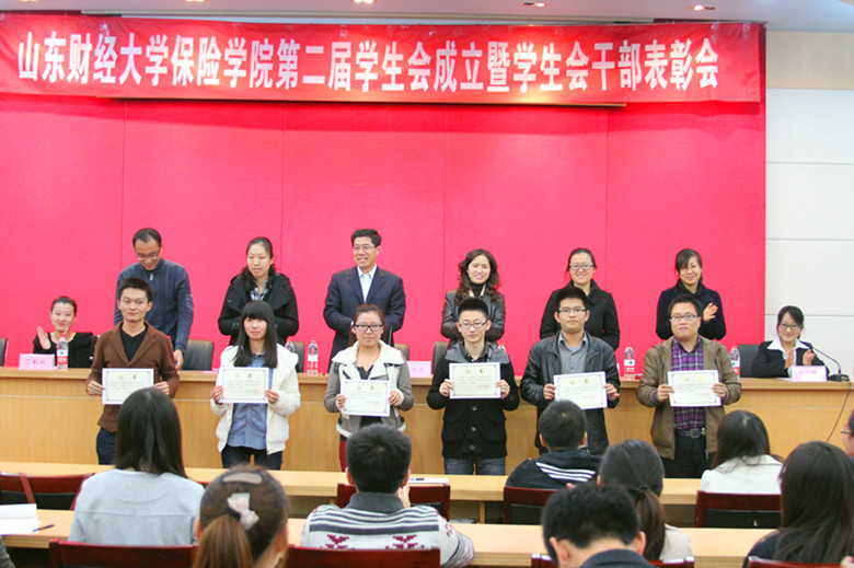 首届学生会主席丁毓姣做了题为“凝心聚力,忆往昔成绩斐然;追求卓越,展保险恢弘蓝图”的述职报告,第二届学生会主席岳蕾发表就职演说。
