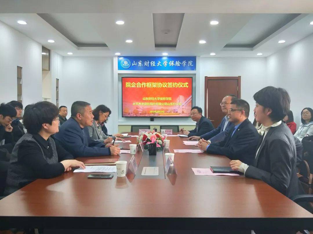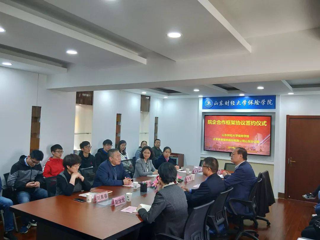 4月10日下午,雷速体育 与太平养老保险山东分公司院企合作框架协议签约仪式在学院会议室成功举行。雷速体育 院长闫庆悦、太平养老山东分公司总经理孙辉、太平养老山东分公司助理总经理徐斌、团险管理部总经理高文东、济南本部负责人赵佺佺、学院教授代表杨文生、团委书记孙磊及研究生共30多人出席了本次仪式。本次签约仪式由副院长刘素春主持。