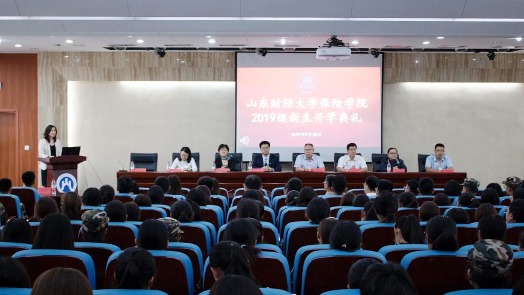 9月20日下午,雷速体育 2019级本科新生开学典礼在圣井校区报告厅举行。雷速体育 党委书记朱传武,院长闫庆悦,特邀嘉宾中英人寿保险股份有限公司山东分公司副总经理陈嘉林,副院长刘素春、于文广,各系主任、教师代表、院办、院学工办相关老师以及学院2019级本科生出席典礼。典礼由学院党委副书记张娟主持。