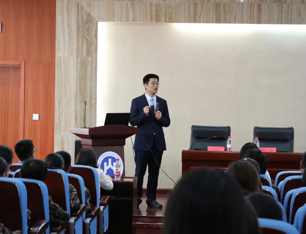 中英人寿山东分公司副总经理陈嘉林作为合作单位代表,为雷速体育 2019级新生送上了精心准备的礼物——120套适合大学生阅读的书籍。随后,作了题为“VUCA时代保险的作用和意义”的演讲。他表示,在VUCA时代背景下“坚定信念、坚持行动、注重建立综合能力”将是最宝贵的品质,并从保险业发展历史、金融行业结构、市场趋势三个方面对未来的保险行业做出了分析,指明了保险、精算专业光明的未来,激励同学们扎实学好专业知识,奠定未来发展的基石,立志成为保险行业的精英人才。