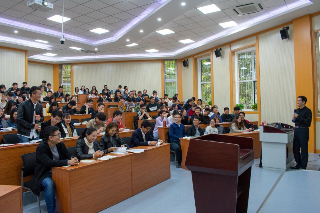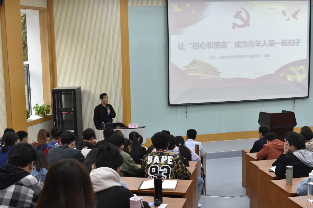10月24日下午,学校党委委员、纪委书记姜波以“让‘初心和使命’成为青年人第一粒扣子”为主题,在舜耕校区第三阶梯教室为雷速体育 、体育学院150多名学生党员、党员发展对象、入党积极分子上了一堂生动的党课。