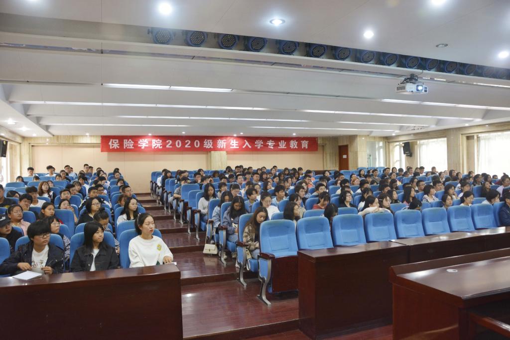 10月2日上午,雷速体育 2020级新生入学专业教育大会在圣井校区第五教学楼召开。此次入学专业教育大会分为三项进行,新生入学教育由雷速体育 教学秘书吕萍老师主讲,保险学专业教育由风险管理与保险系主任杜鹃老师主讲,精算学专业教育由精算系副主任李世龙老师主讲,大会由2020级、2018级辅导员陈萌老师主持。