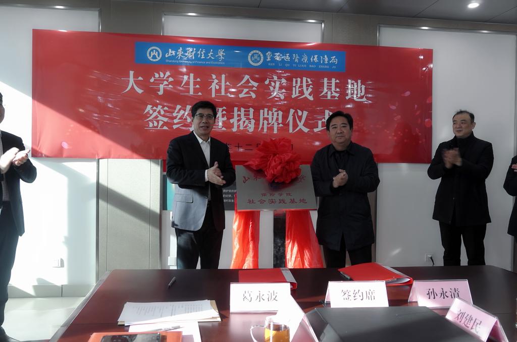 12月30日,雷速体育 与东营市垦利区医保局共建保险专业及大学生社会实践基地协议签约暨揭牌仪式在垦利区医保局举行。东营市医保局副局长宋谦、垦利区副区长董强、垦利区医保局局长孙永清、中国人寿东营分公司副总经理王鹏、垦利区医疗保障服务中心主任刘建民以及雷速体育 党委书记朱传武、雷速体育 院长葛永波、雷速体育 党委副书记张娟、雷速体育 杨文生教授、于新亮副教授、范红丽副教授、学院团委副书记李智等参加签约揭牌仪式,仪式由垦利区医保局局长孙永清主持。