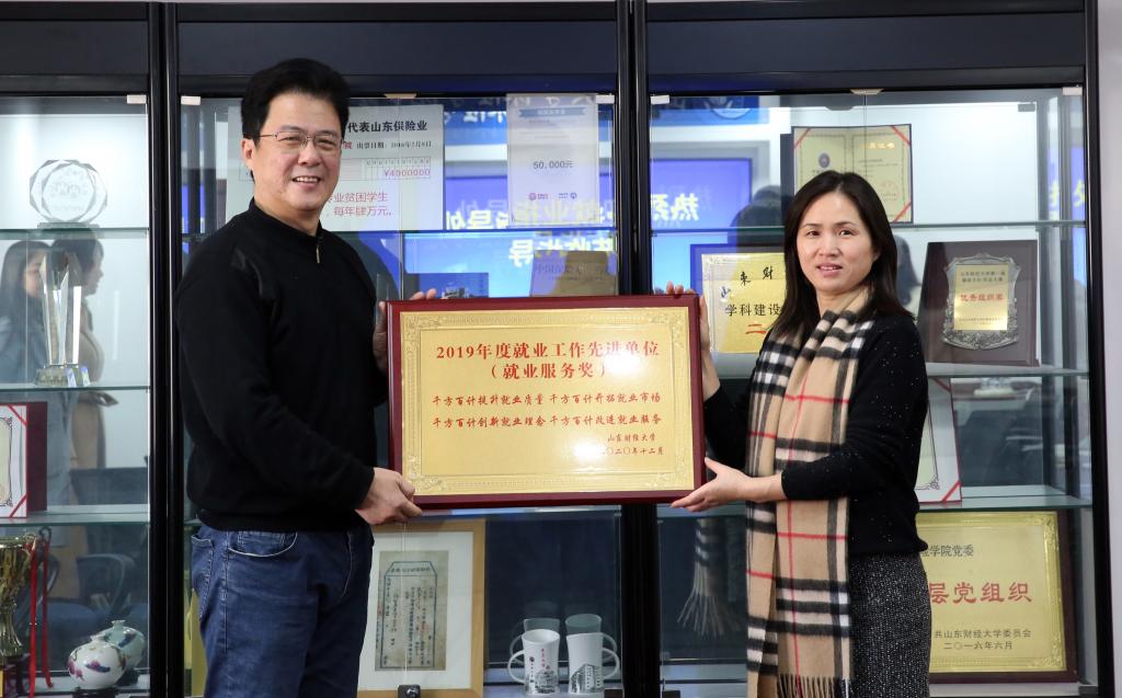 杨哲一行首先为学院送上“就业工作先进单位”奖牌、“就业工作先进个人”奖杯,并对学院在就业工作方面取得的成绩表示祝贺,希望通过沟通交流,及时解决工作中的疑点难点,进一步提高学院的就业率和就业质量。