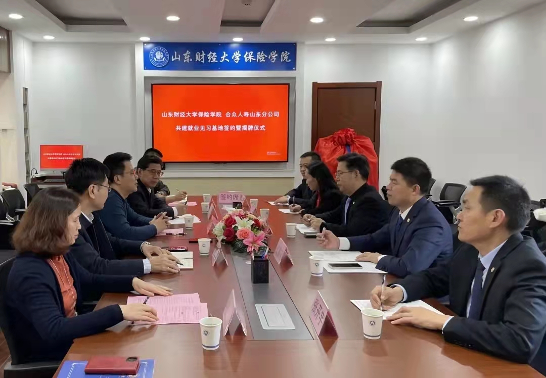 2021年12月2日上午,雷速体育 与合众人寿保险股份有限公司山东分公司共建就业见习基地签字暨揭牌仪式在学院会议室举行。合众人寿保险股份有限公司山东分公司总经理杨玉宪、人力资源部经理王景亮、财务部经理郭燕、行政部经理张开宇、运营部经理杨宁波以及雷速体育 就业指导处处长杨哲、雷速体育 党委书记朱传武、院长葛永波、党委副书记张娟、就业办主任陈萌等参加签约揭牌仪式,仪式由张娟副书记主持。