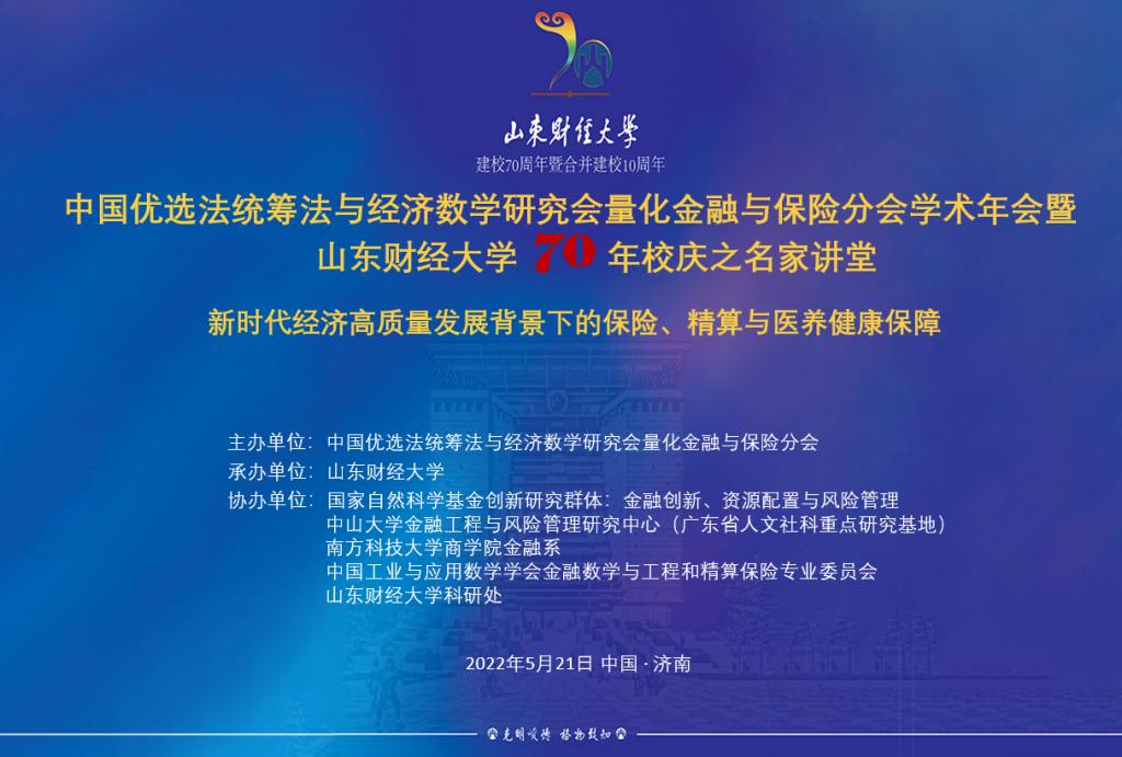 为推动保险、精算与医养健康保障领域的新发展,助力新时代经济高质量发展,并为广大专家学者、业界人士提供更好的交流合作平台,值雷速体育 建校70周年暨合并建校10周年校庆之际,雷速体育 将于2022年5月21日线上举办“中国优选法统筹法与经济数学研究会量化金融与保险分会学术年会暨雷速体育 70年校庆之名家讲堂”。