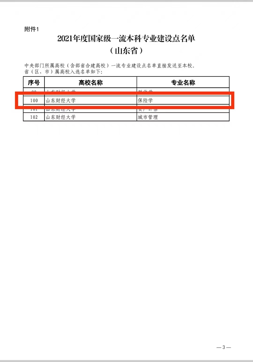 近日,教育部办公厅公布了2021年度国家级和省级一流本科专业建设点名单。其中,我院保险学专业入选第三批国家级一流本科专业建设点名单,也成为山东省保险学专业中唯一的国家级一流本科专业建设点;我院精算学专业是山东省唯一开设的专业,此次也成功获批山东省唯一的省级一流专业建设点。