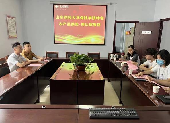 6月27-28日,由13名成员组成的博山分队就博山猕猴桃保险全产业链风险问题走访了两家保险公司,了解了猕猴桃承保的全部流程。果树和果实都在承保范围内,保费较低,赔付率较高,政府实施补给20%到户的政策,分别有个人、企业或合作社联合承保两种参保方式。当发生灾害时,农民可以利用互联网线上传递灾害发生地照片给保险公司,保险公司进行进一步线上线下审核后进行赔付,非常便捷。