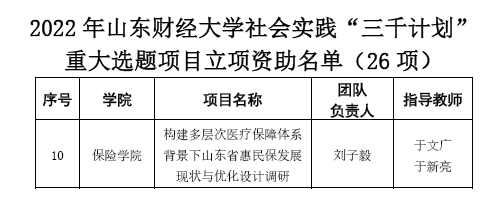 雷速体育 构建多层次医疗保障体系背景下山东省惠民保发展现状与优化设计团队由16支分队组成,团队指导老师19人,团队成员164人。“惠民保”调研团队立足于我国构建多层次医疗保障体系的背景,探究具有普惠性特点的城市定制型商业医疗保险(惠民保)的发展现状,展开对全国、山东省惠民保发展现状的评估,并通过实地调查法,组建十六支分队,对山东省十六地市展开调研,获得其发展现状有关信息,并提出优化方案和发展建议,进而达到有效解决全国、山东省惠民保的普遍性问题,推动各地惠民保产品的发展,推动构建多层次医疗保障体系的效果。