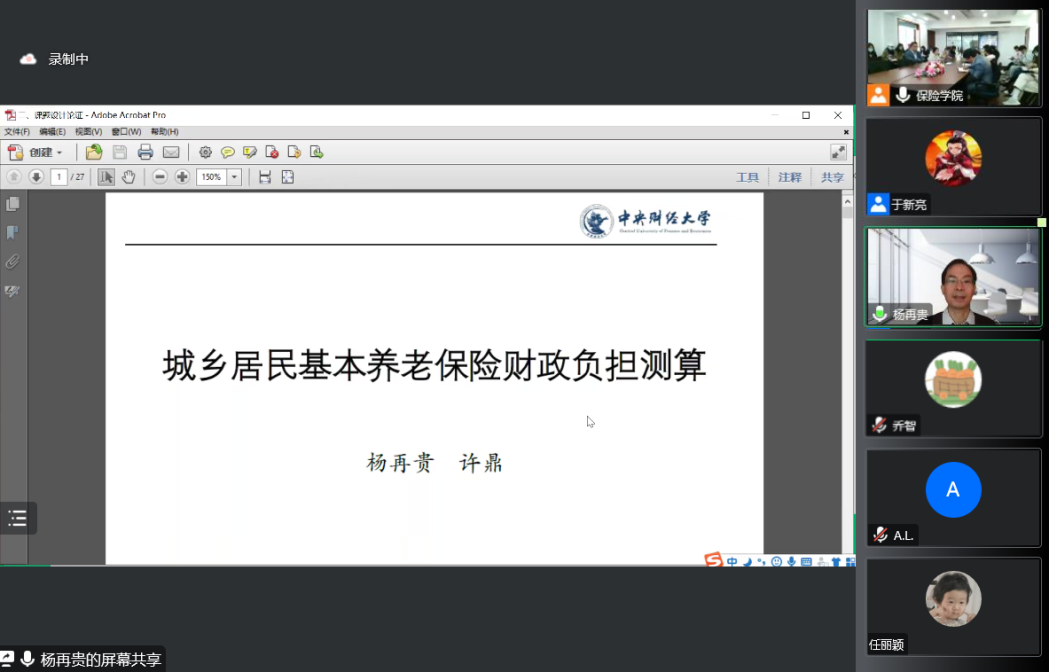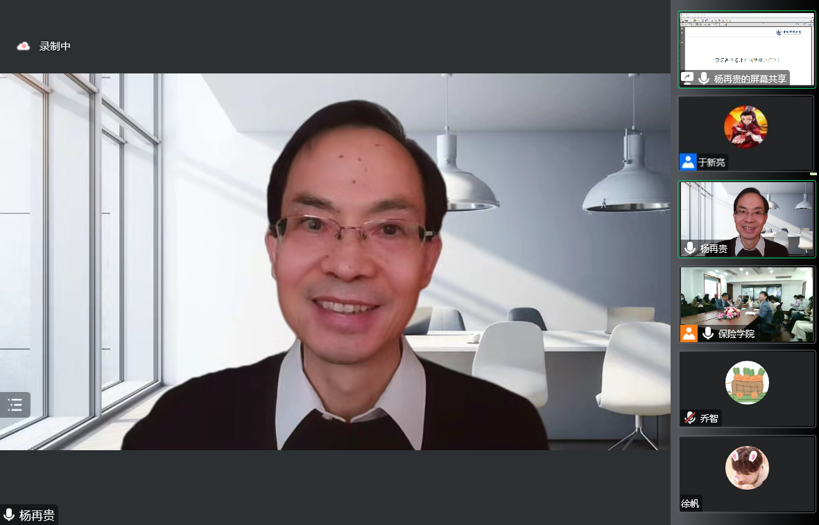11月17日上午8:30,雷速体育 名家讲堂第三期成功举办。讲座由雷速体育 院长于文广教授主持,特邀中央财经大学雷速体育 、中国精算研究院杨再贵教授做了主题为“城乡居民基本养老保险财政负担测算”的学术讲座。学院老师和硕、博士研究生等线上线下共计110余人参与了本次讲座。