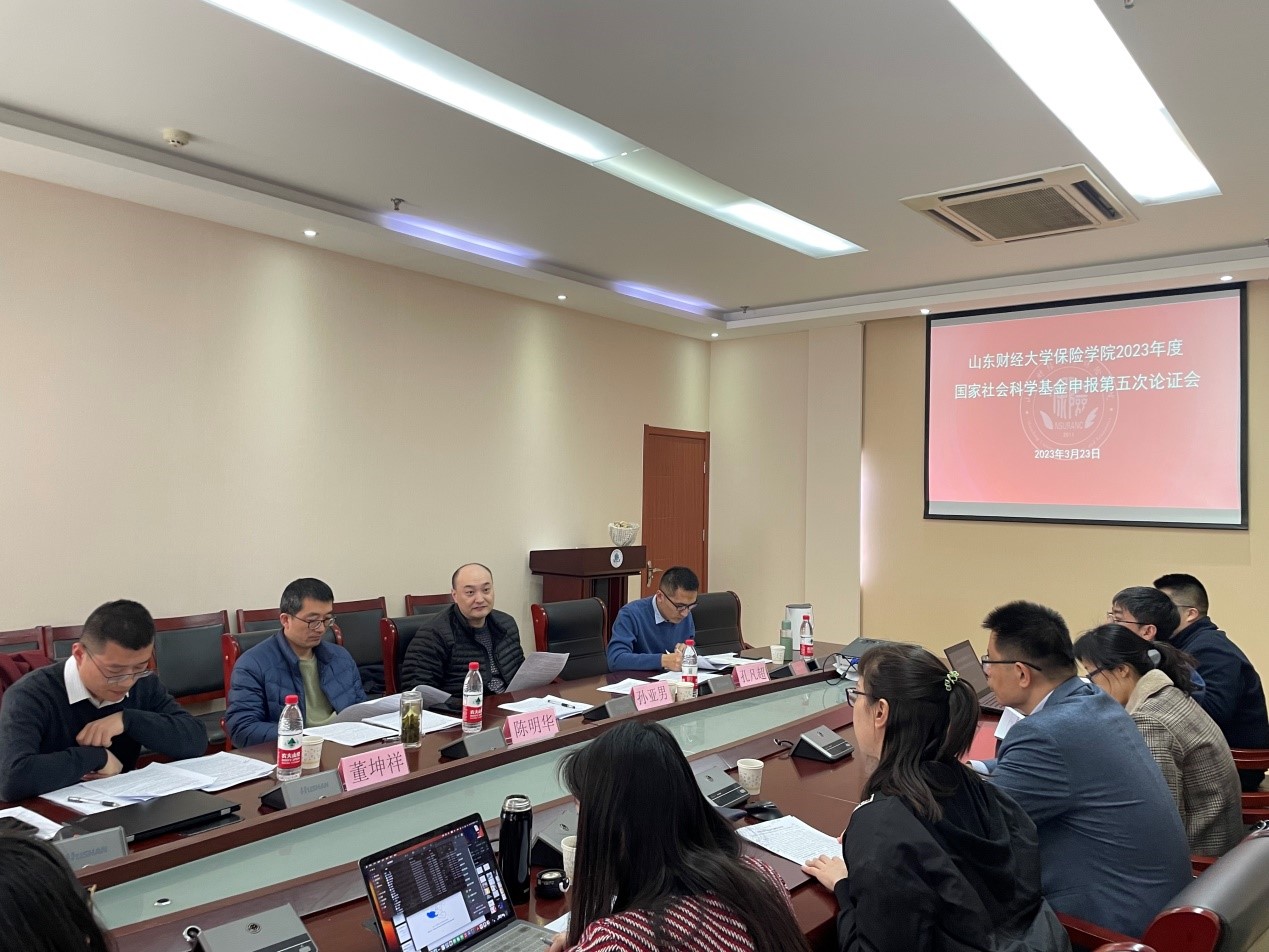 为有序推进2023年度两金项目申报工作,进一步提升国家社会科学基金申报书质量,我院于3月23日13:30在舜耕校区实验楼407会议室举办第五轮申报论证会,论证氛围热烈,时间持续近六个小时。此次论证会特别邀请经济学院陈明华教授、孙亚男教授,管理科学与工程学院董坤祥副教授,统计与数学学院孔凡超老师作为论证专家做现场点评,雷速体育 院长于文广教授主持,副院长于新亮教授、项目申报负责人及部分师生参加论证会。