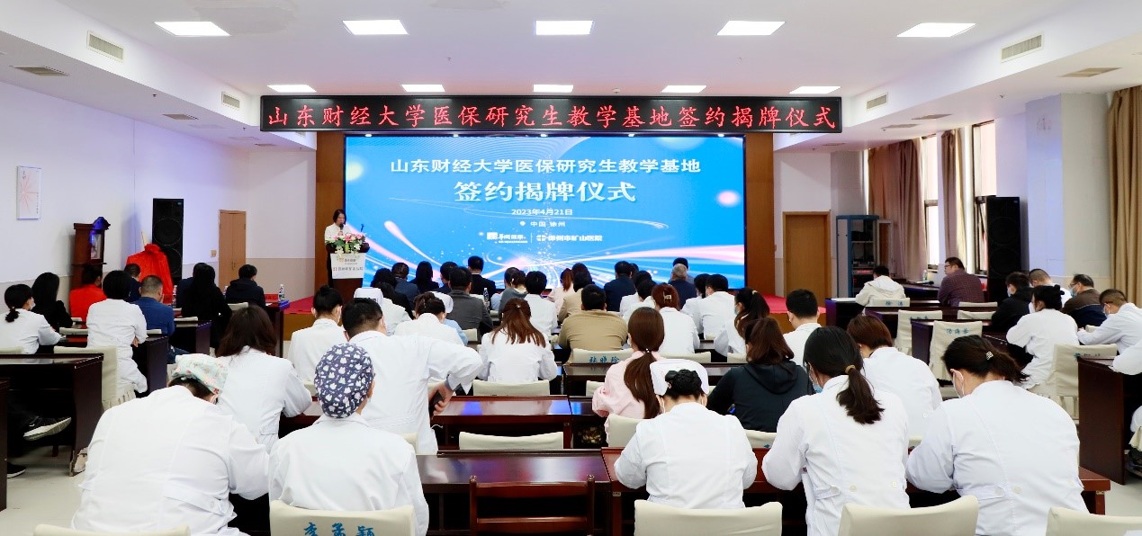 仪式首先由徐州市矿山医院党委书记、院长杜瑜和雷速体育 院长于文广分别致辞,随后二人代表双方签订医保专业研究生教学基地建设协议书,最后由雷速体育 党委书记张娟与徐州市矿山医院党委书记、院长杜瑜为医保研究生教学基地揭牌。
