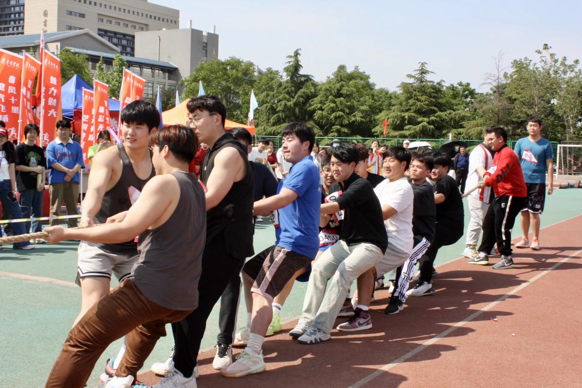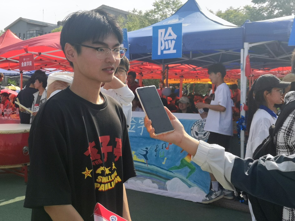 A:首先作为大一同学第一次参加运动会感到非常幸运,在拔河比赛中感受到了保院男生的凝聚力,并且大家都能感受到这份热情,明年我们也会继续努力,争取获得更好的成绩。