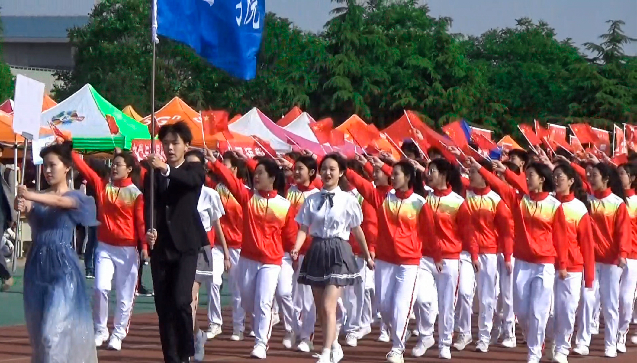 在这个欣欣向荣的季节,大家在运动场上挑战自我,超越梦想,彰显青春的力量。相信同学们今天在运动会的赛道上奋力拼搏,争取优异的成绩。来日在青春的赛场上也会勇往直前,收获锦绣的前程!同学们辛苦啦!