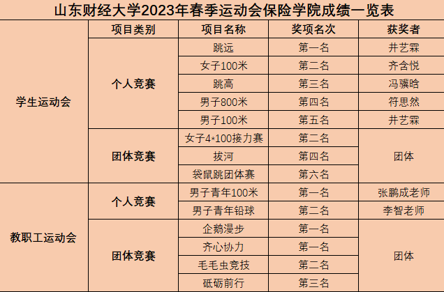 跳远第一名 100米决赛第五名