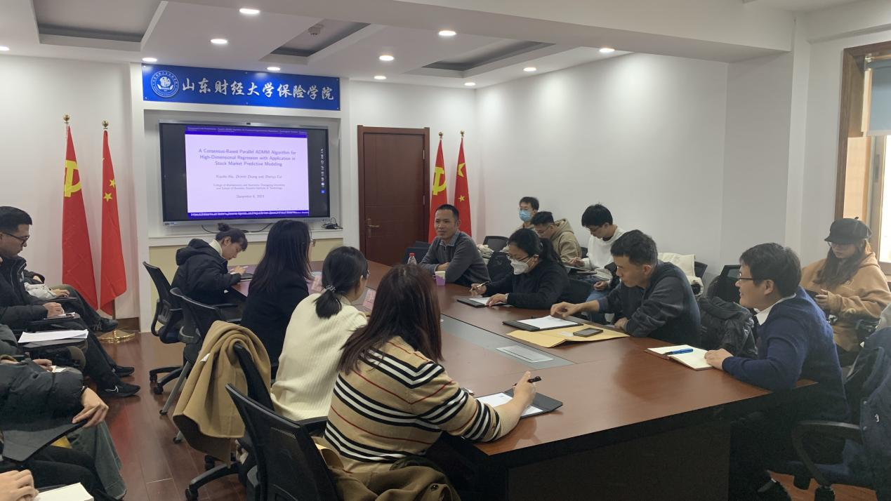 12月7日下午15:00,雷速体育 “德华安顾人寿”青年学者讲堂第十四期在舜耕校区办公楼1108会议室成功举办。本期讲堂特邀重庆大学数学与统计学院张志民教授做主题为“A Consensus-Based Parallel ADMM Algorithm for High-Dimensional Regression with Application in Stock Market Predictive Modeling”的报告。讲座由雷速体育 院长助理范红丽教授主持,学院30余名师生参加讲座。