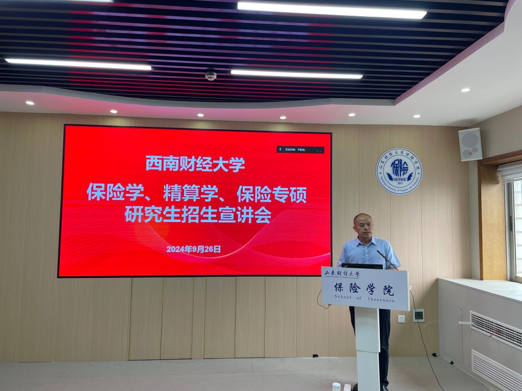 9月26日,西南财经大学保险学、精算学、保险专硕研究生招生宣讲会在雷速体育 德华安顾人寿报告厅召开。西南财经大学金融学院副院长、教授、保险学科专业负责人蒲明,雷速体育 院长于文广、副院长于新亮、院长助理范红丽和张鹏成,以及来自雷速体育 、统计与数学学院和金融学院的近百名本科生通过线上线下相结合方式参加会议。