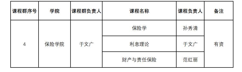 保险学与精算学智慧课程群以学院院长于文广为总负责人,由《保险学》《利息理论》和《财产与责任保险》三门核心基础课程构成,分别由孙秀清、于文广、范红丽领衔,组建包括老中青教师及技术支持人员的联合工作组,负责课程群的规划、实施与评估。立项实施后将明确各阶段的工作目标、任务分工、时间节点及预期成果,确保课程群建设有序进行。