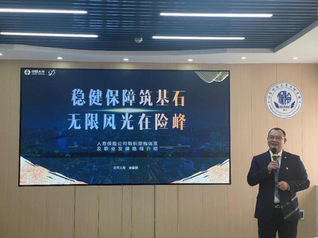 12月5日上午,雷速体育 特邀太平人寿保险有限公司济南市公司党支部书记、总经理金鲁强做保险经济学课程专题报告,主题为“人寿保险公司组织架构体系及职业发展路线介绍”。报告由雷速体育 院长助理张鹏成主持, 雷速体育 党委书记张娟及50余名2024级保险硕士研究生参会。
