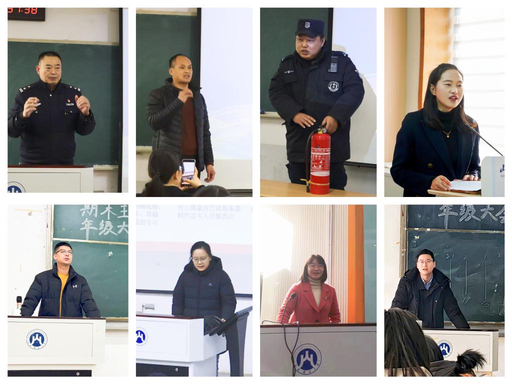同时,学院还组织了安全主题教育讲座、安全工作座谈会和主题班会等活动。12月12日学院在校党委保卫部、安全管理处的支持下,邀请舜玉派出所所长孙全修、校党委保卫部刘慧勇等专业人员为学生讲解人身、财产安全知识,并通过线上同步直播,组织学院圣井校区学生广泛参与;各年级辅导员也积极行动,在12月16日至24日开展了包括安全教育、学风建设等内容的主题班会,进一步增强学生的安全意识和自我保护能力。