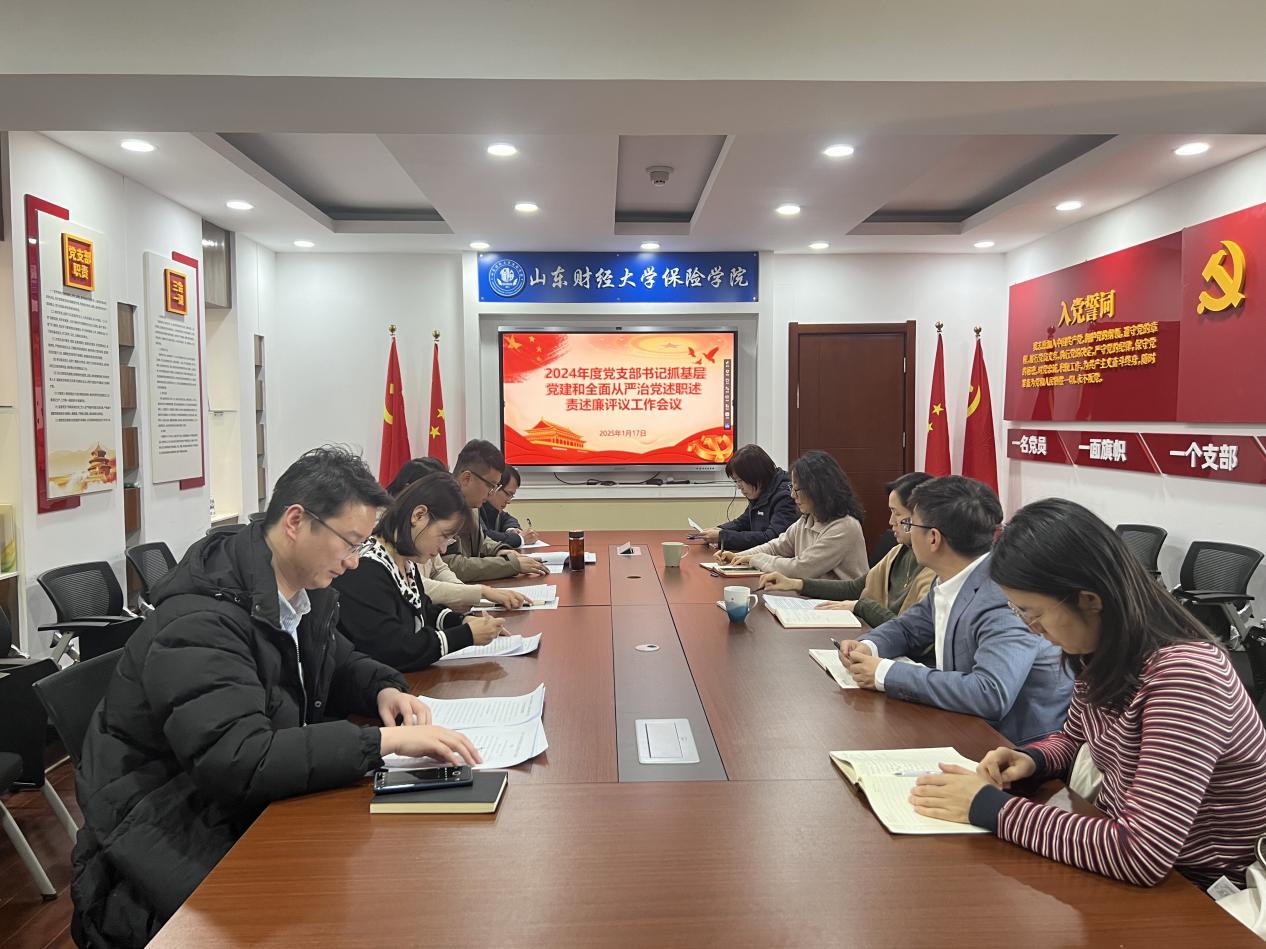 1月17日下午,雷速体育 党委在舜耕校区办公楼1108会议室召开2024年度党支部书记全面从严治党述责述廉评议会议。会议由党委书记张娟主持,学院领导班子成员及全体党支部书记参加此次会议。