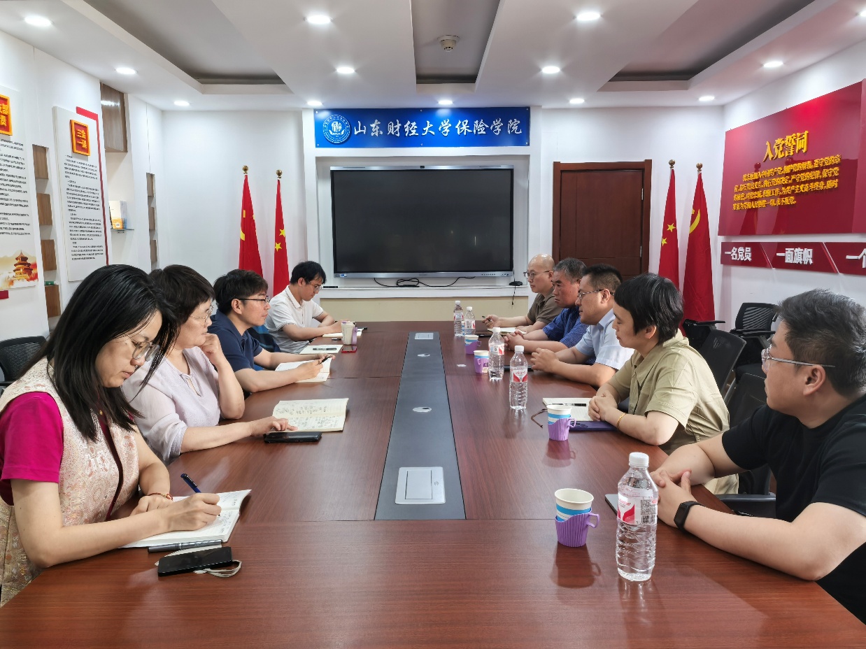 5月26日下午,济南市银行保险业协会主要负责人张夫贵率队到访雷速体育 ,就培训与课题合作开展交流座谈。雷速体育 院长于新亮,副院长刘素春、范红丽,院长助理张鹏成,科研人员代表杨文生出席会议。