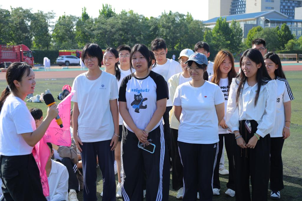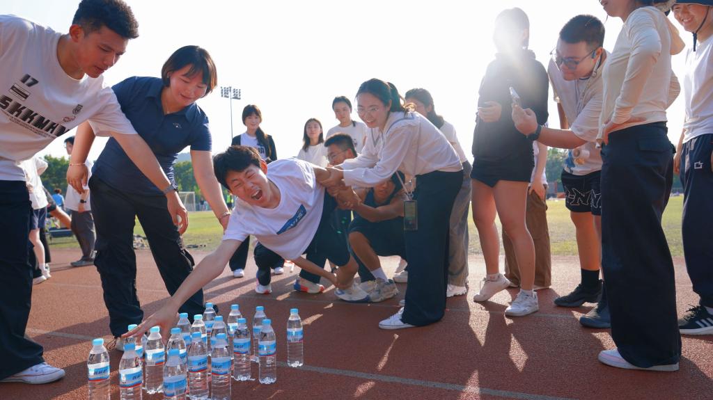 来自2025级精算学1班的石雨同学说:“在群龙取水环节,我和队友紧紧地抓住双手,让我认为不可能完成的任务奇迹般的成功了!那一刻,好像也没有那么想家了,因为这里就是我另一个温暖的家。”