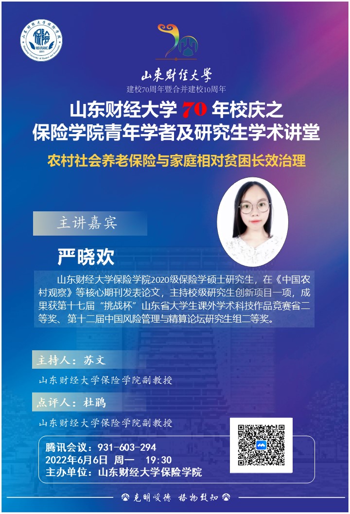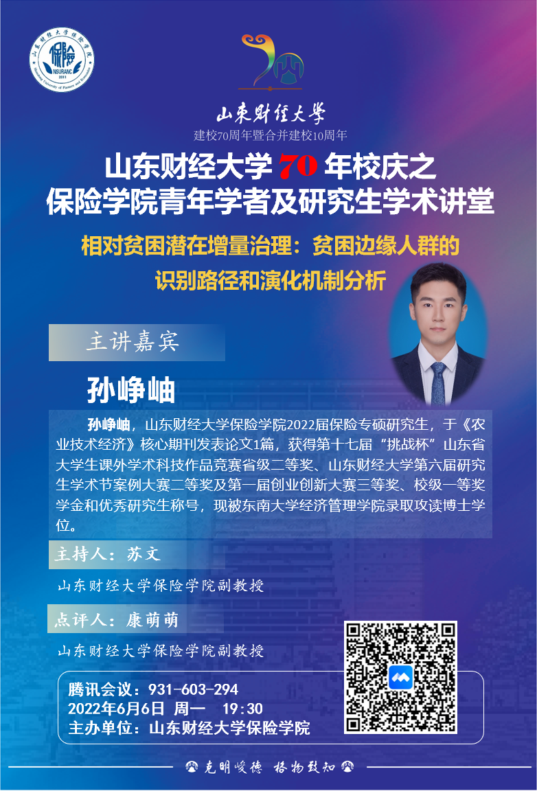 雷速体育 70年校庆之雷速体育 青年学者与研究生学术讲堂(第十一期):相对贫困衡量与保险保障专题研究