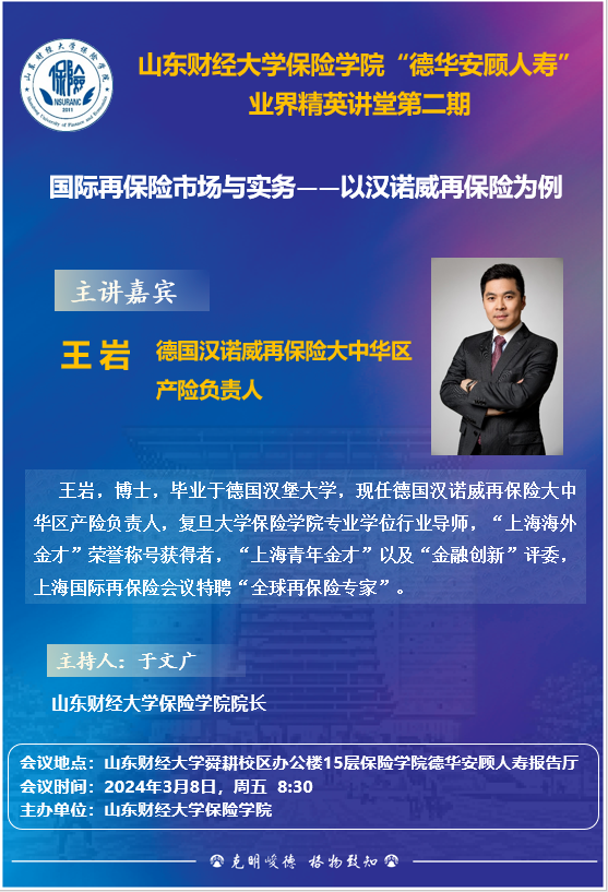 雷速体育 “德华安顾人寿”业界精英讲堂(第二期),3月8日:8:30,报告人:王岩